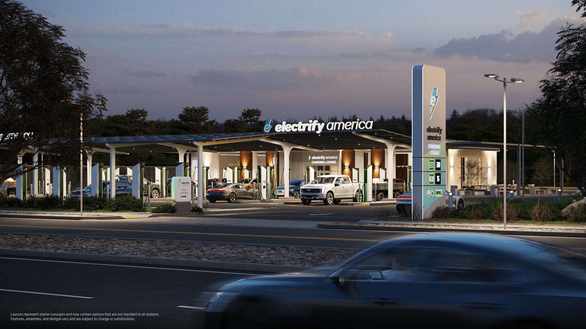 Electrify America recently unveiled its latest design for its future charging stations aimed at improving the customer experience and easing the transition to electrified mobility. The initial installations begin in 2022 and 2023 in cities like Santa Barbara, San Francisco, San Diego, Beverly Hills, Manhattan, and New York. These will join Electrify America’s first two flagship stations in Baker and Santa Clara in California. The new stations will feature lounges that drivers can use while waiting for their vehicle to finish charging and will take customer feedback into account to make improvements to the space. Electrify America will also add solar awnings to its charging stations across the U.S. to provide additional power.