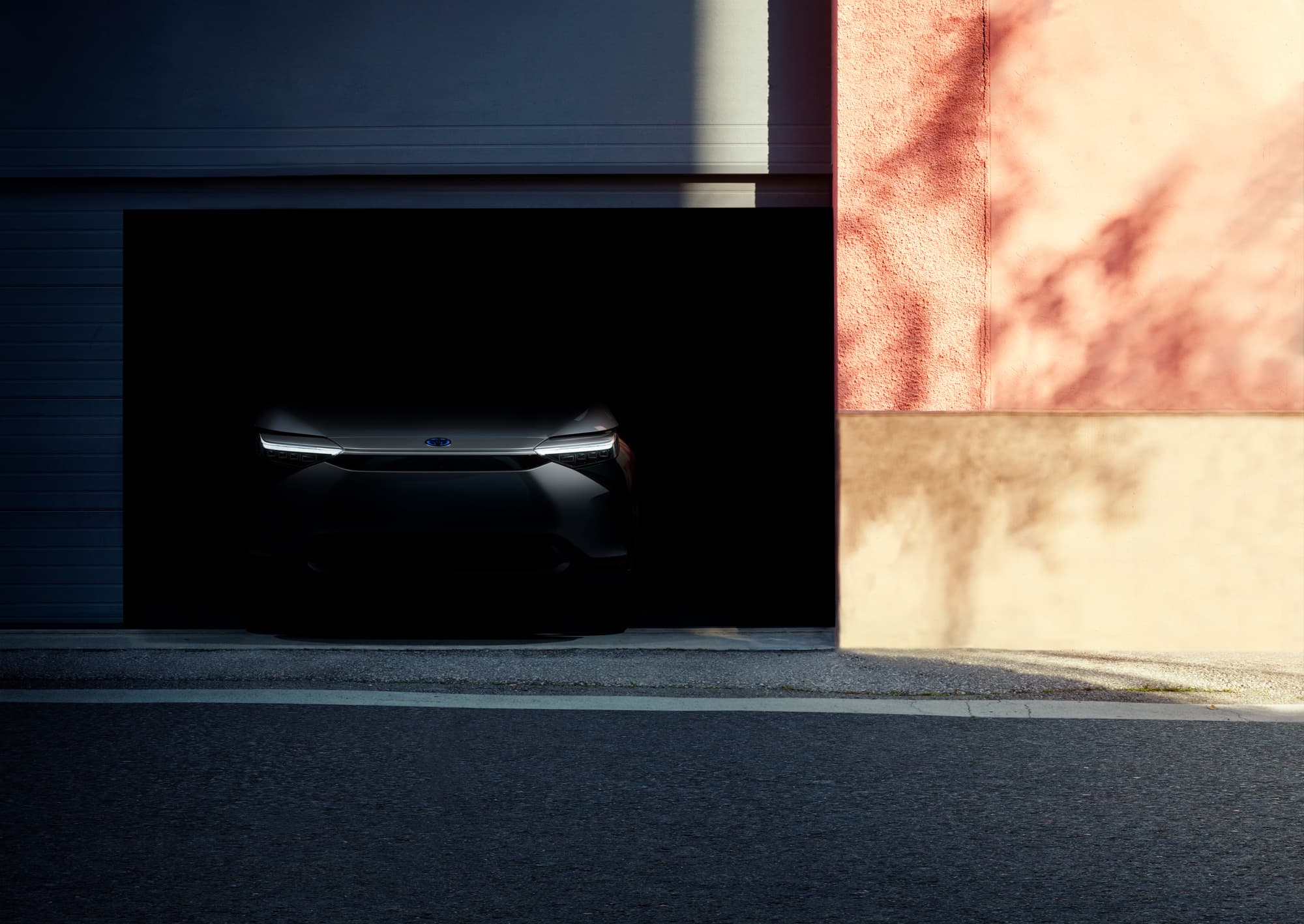 A photo was also included of the car peeking out slightly in a garage. You immediately notice the lack of a traditional grille and a blue Toyota badge, hinting at its electrified nature. The car appears to be a crossover, hinting that this could be one of the two models that Toyota and Subaru arecodevelopingg, which is similar in size to the RAV4. Like most modern Toyotas, this concept has a lot of angles. Both LED headlight clusters also look like they’re linked together by a single chrome strip